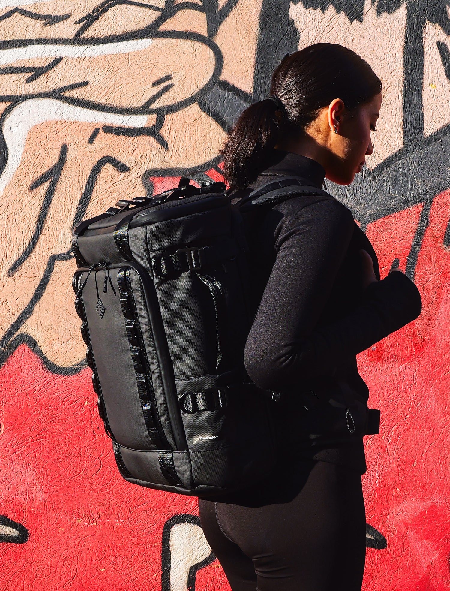 With the waist strap attached, it stayed stable during movement shots and looked proportional on smaller frames - great for lifestyle visuals that didn’t scream “technical gear bag.”